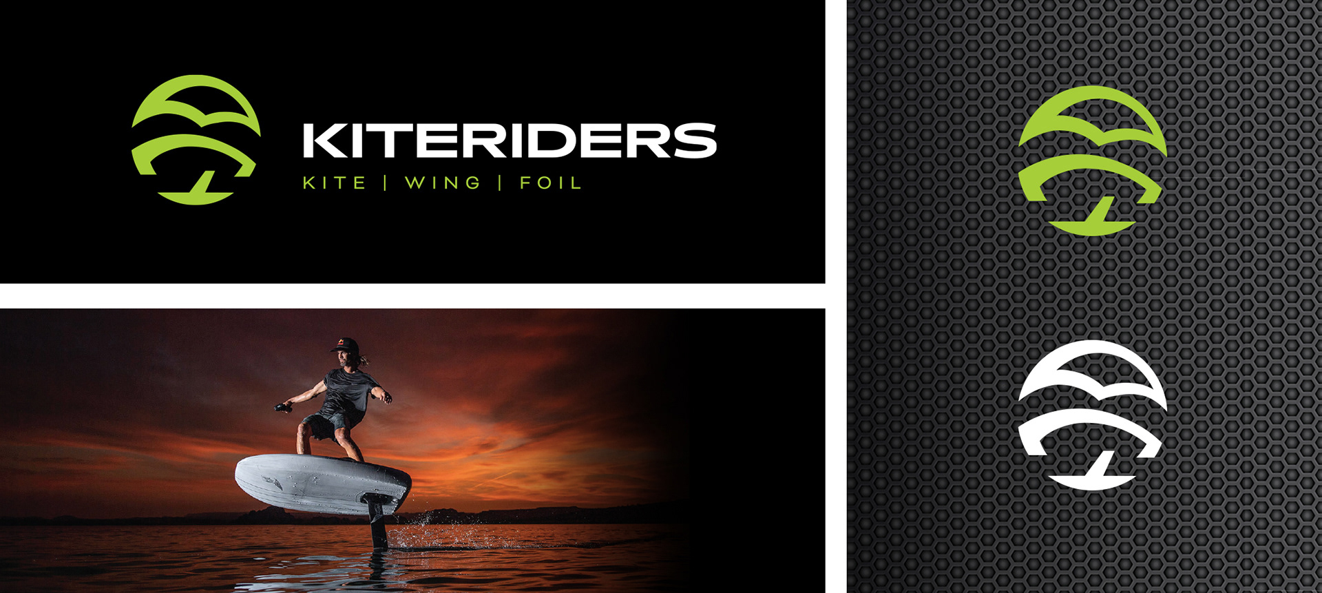 Rebrand for a local kite, wing and foil business. This unique new symbol offers a subtle nod to each element while capturing the energy and exhilaration that only harnessing the wind can provide for an adventurous soul.